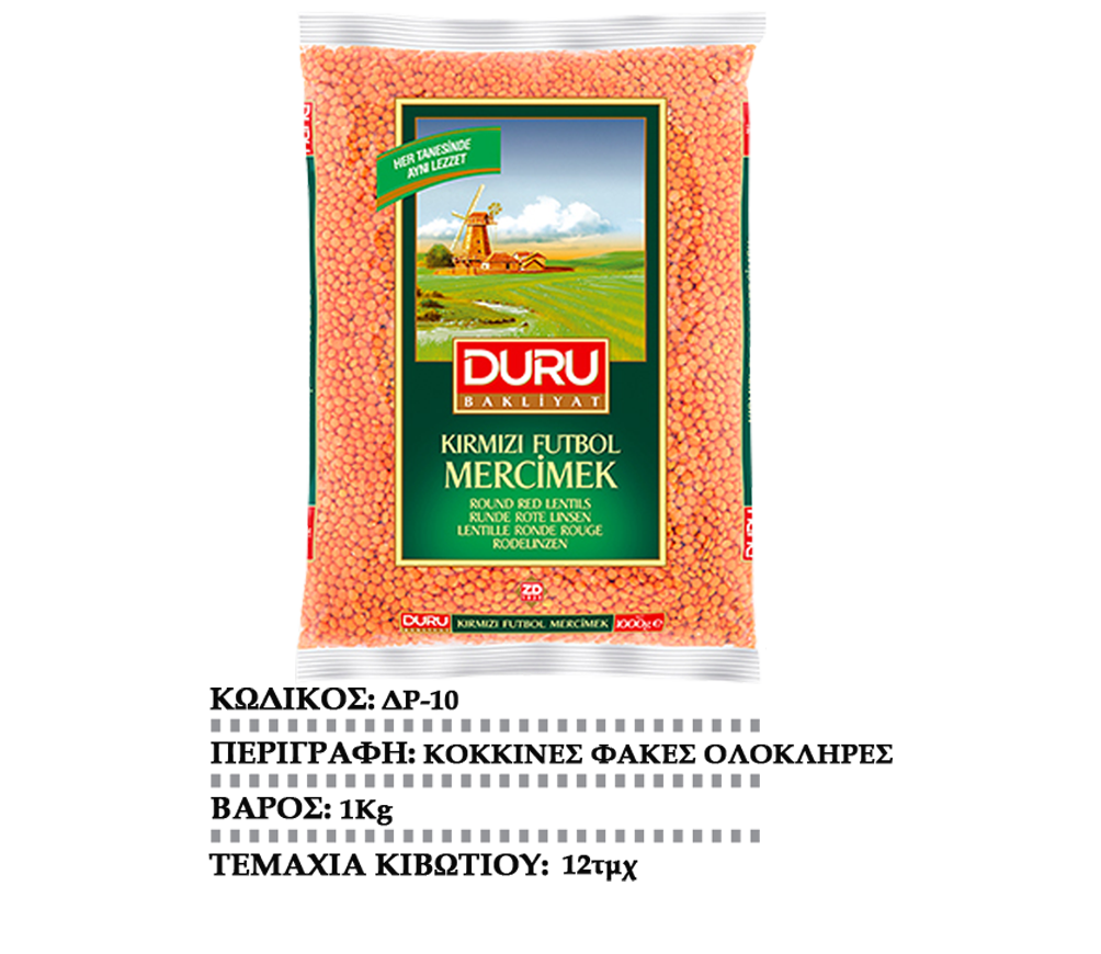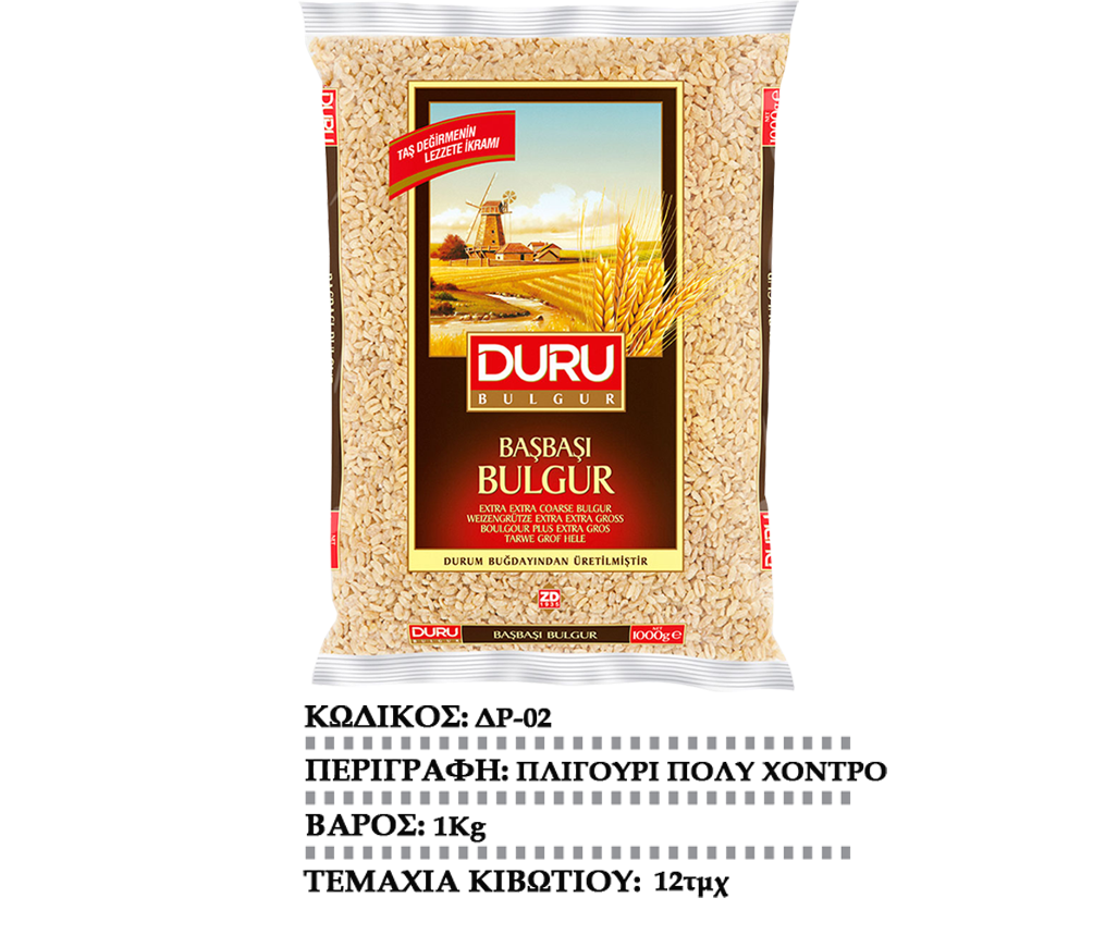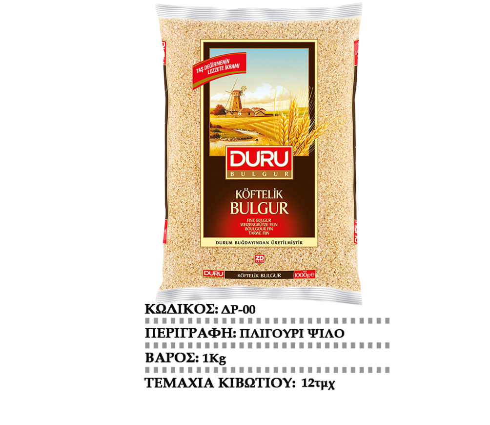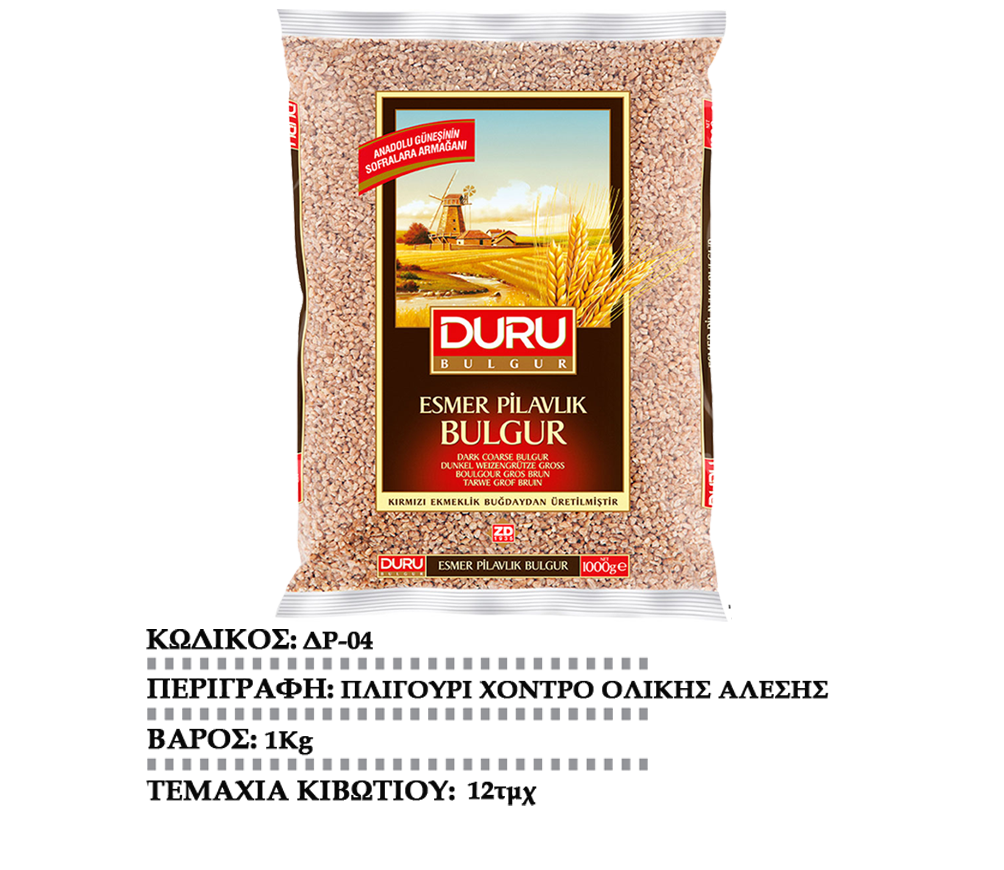 DURUπλιγούρι χοντρόολικής άλεσης DURUαποφλοιωμένο σιτάρι DURUπλιγούριψιλό DURUπλιγούριχοντρό DURUπλιγούριπολύ χοντρό DURUπλιγούριμε φιδέ DURUκόκκινες φακέςολόκληρες