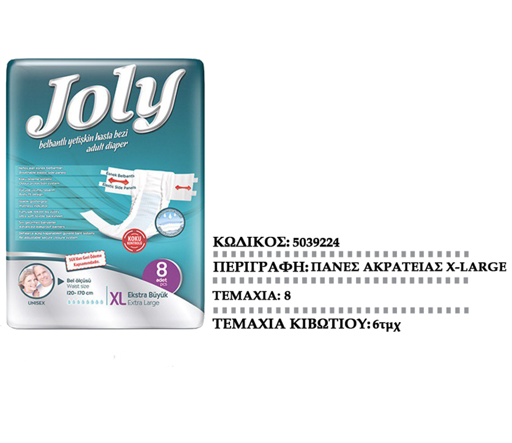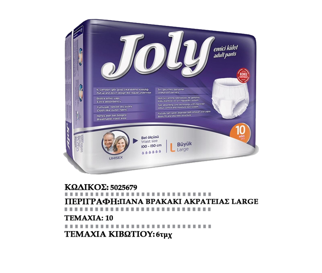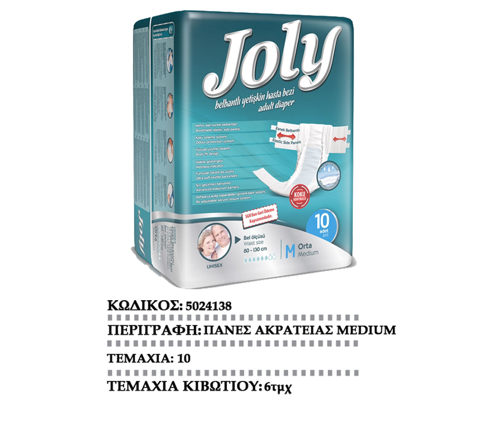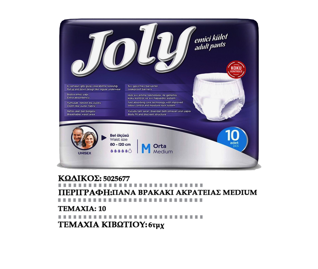 JOLYπάνες ακράτειαςMEDIUM JOLYπάνες ακράτειας LARGE JOLYπάνες ακράτειαςX-LARGE JOLYπάνα βρακάκι ακράτειαςMEDIUM JOLYπάνα βρακάκι ακράτειαςLARGE JOLYυποσέντονα90Χ60cm JOLYυποσέντονα90Χ180cm JOLYLADY απορρ. σερβιέτες(πάνες) EVONYπάνες ακράτειας MEDIUM EVONYπάνες ακράτειας LARGE