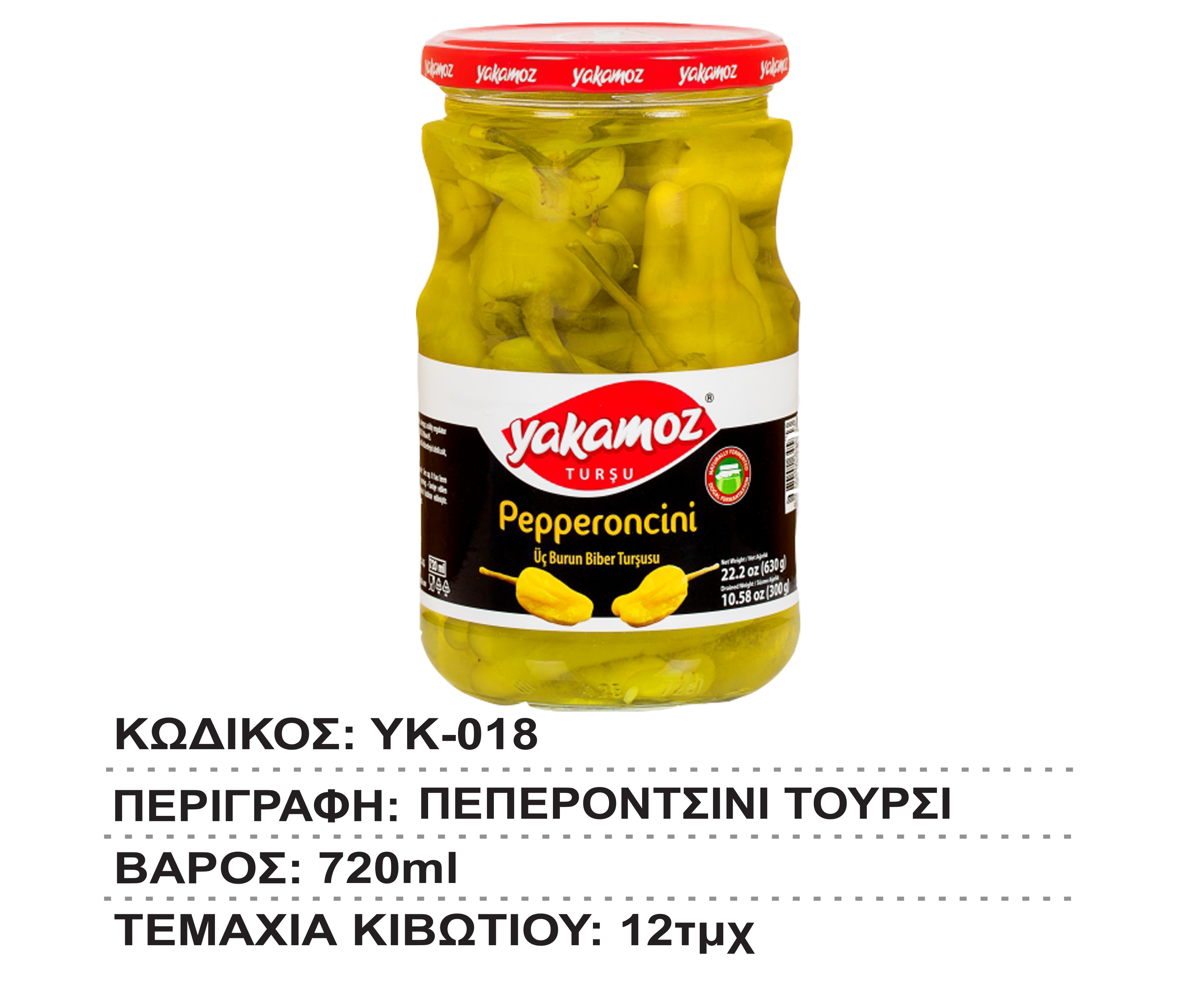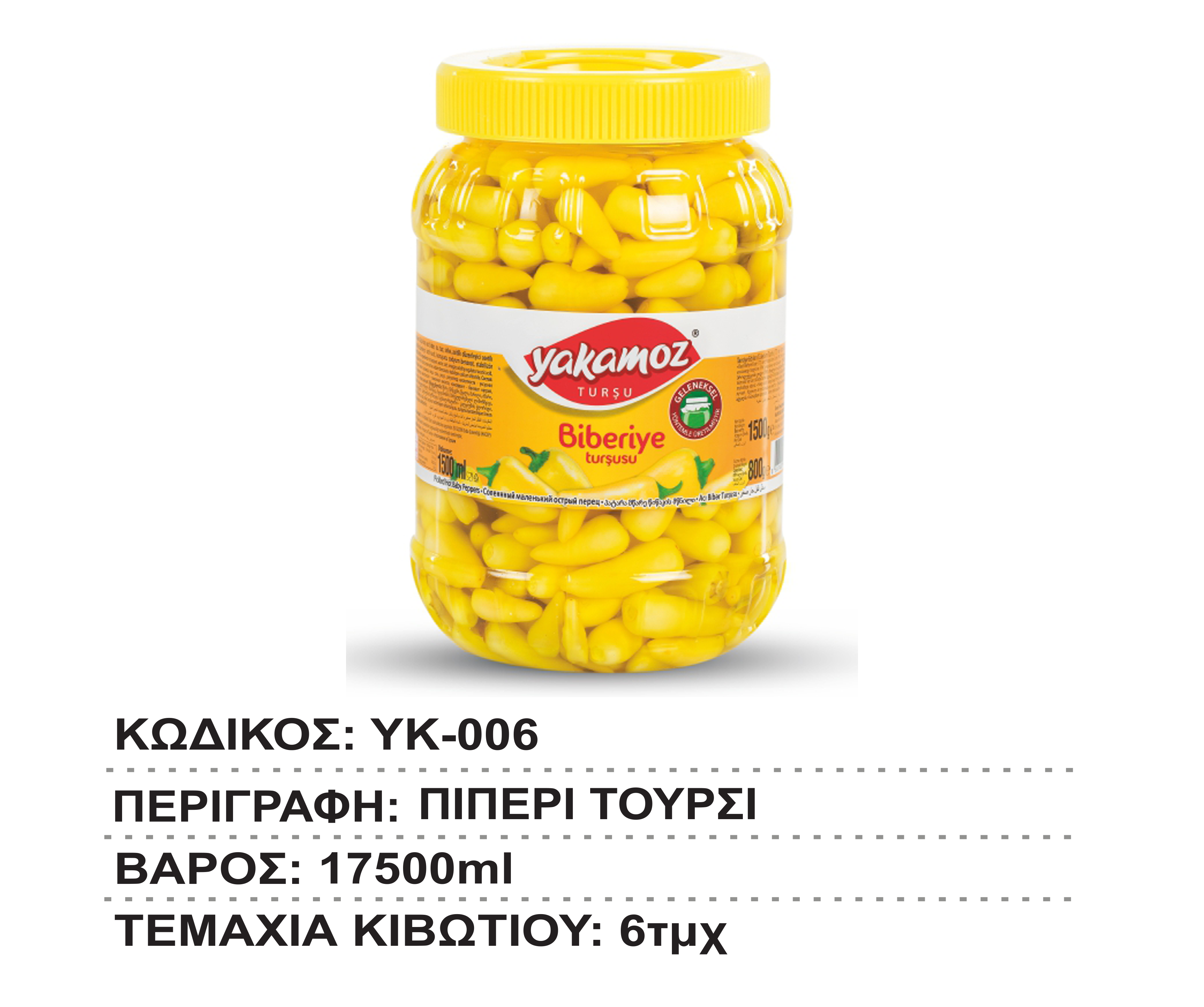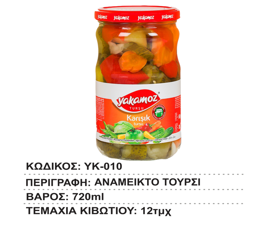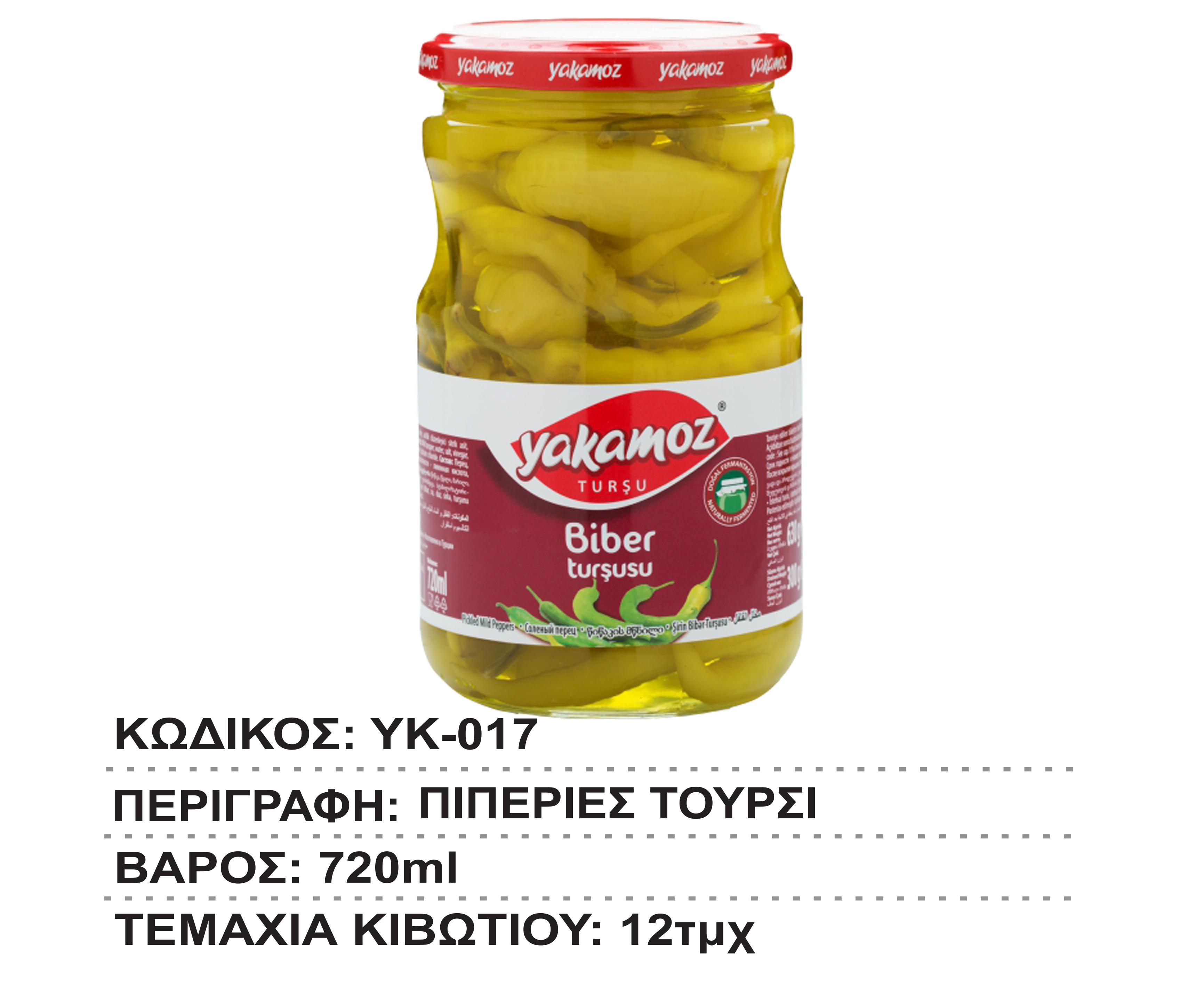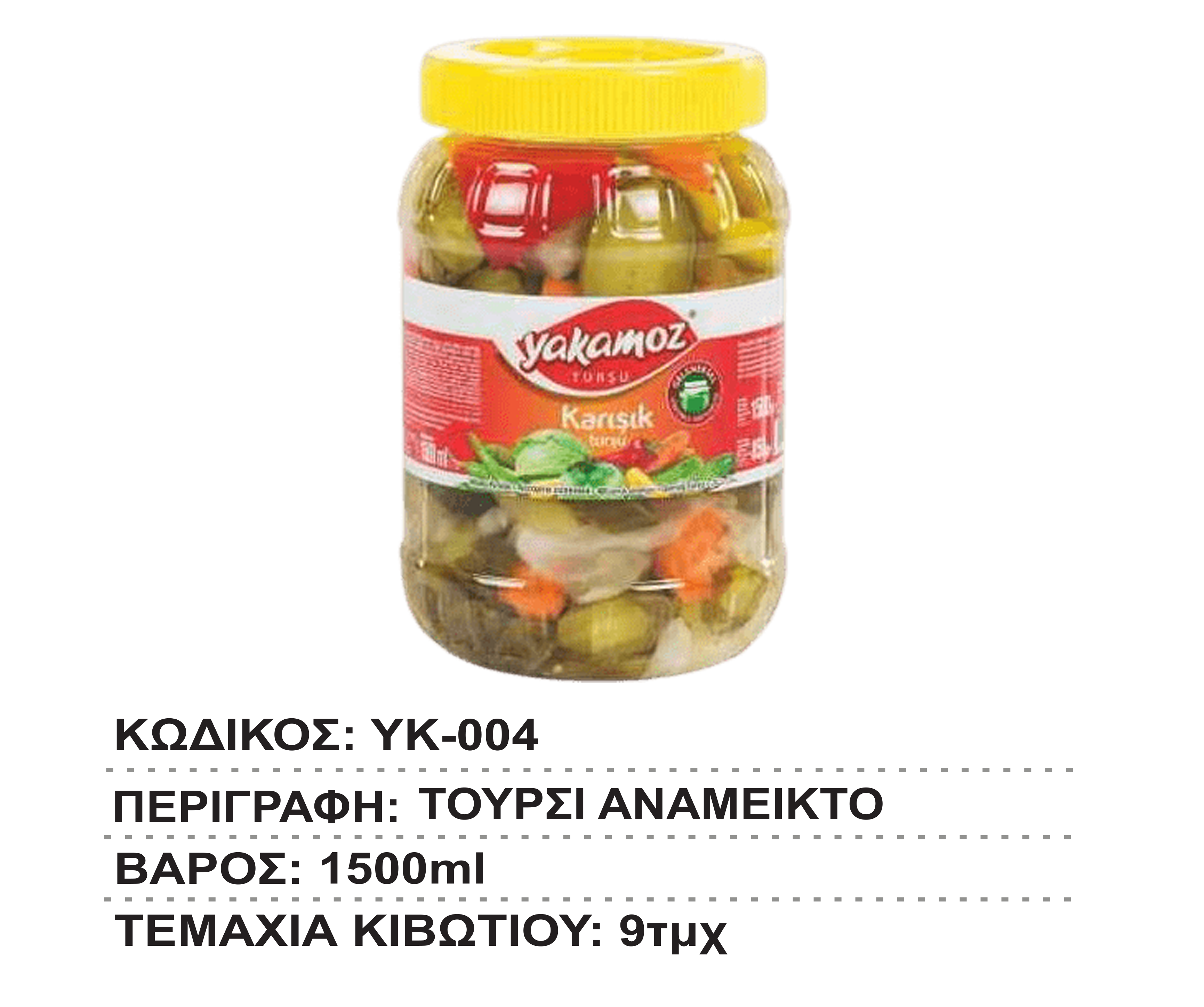 YakamοzΛάχανο τουρσί 1,7lt YakamοzΑγγουράκια τουρσί1,5lt YakamοzΑνάμεικτο τουρσί1,5lt YakamοzΚαυτερό πιπέρι τουρσί1,5lt YakamοzΠιπέρι τουρσί1,5lt YakamοzΑνάμεικτο τουρσί5lt YakamοzΣάλτσα πρωινού 330ml YakamοzΑγγουράκια τουρσί 720ml YakamοzΑνάμεικτο τουρσί 720ml YakamοzΚαυτερό πιπέρι τουρσί 720ml YakamοzΛάχανο τουρσί 720ml YakamοzΠαντζάρι τουρσί 720ml YakamοzΑμπελόφυλλα σε άλμη 720ml YakamοzΑγγουράκια μικρά τουρσί 720ml YakamοzΠιπεριές πίκλες τουρσί 720ml YakamοzΠιπεριές τουρσί 720ml YakamοzΠεπεροντσίνι τουρσί 720ml